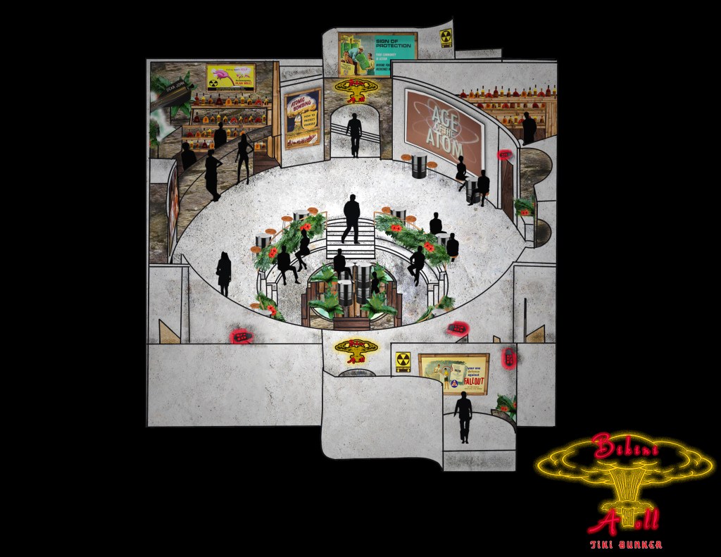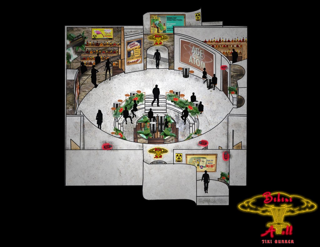 BIKINI ATOLL TIKI BUNKER Architectural concept design for a cold war themed tiki bar. Share this: Click to share on X (Opens in new window) X Click to share on Facebook (Opens in new window) Facebook Like Loading...