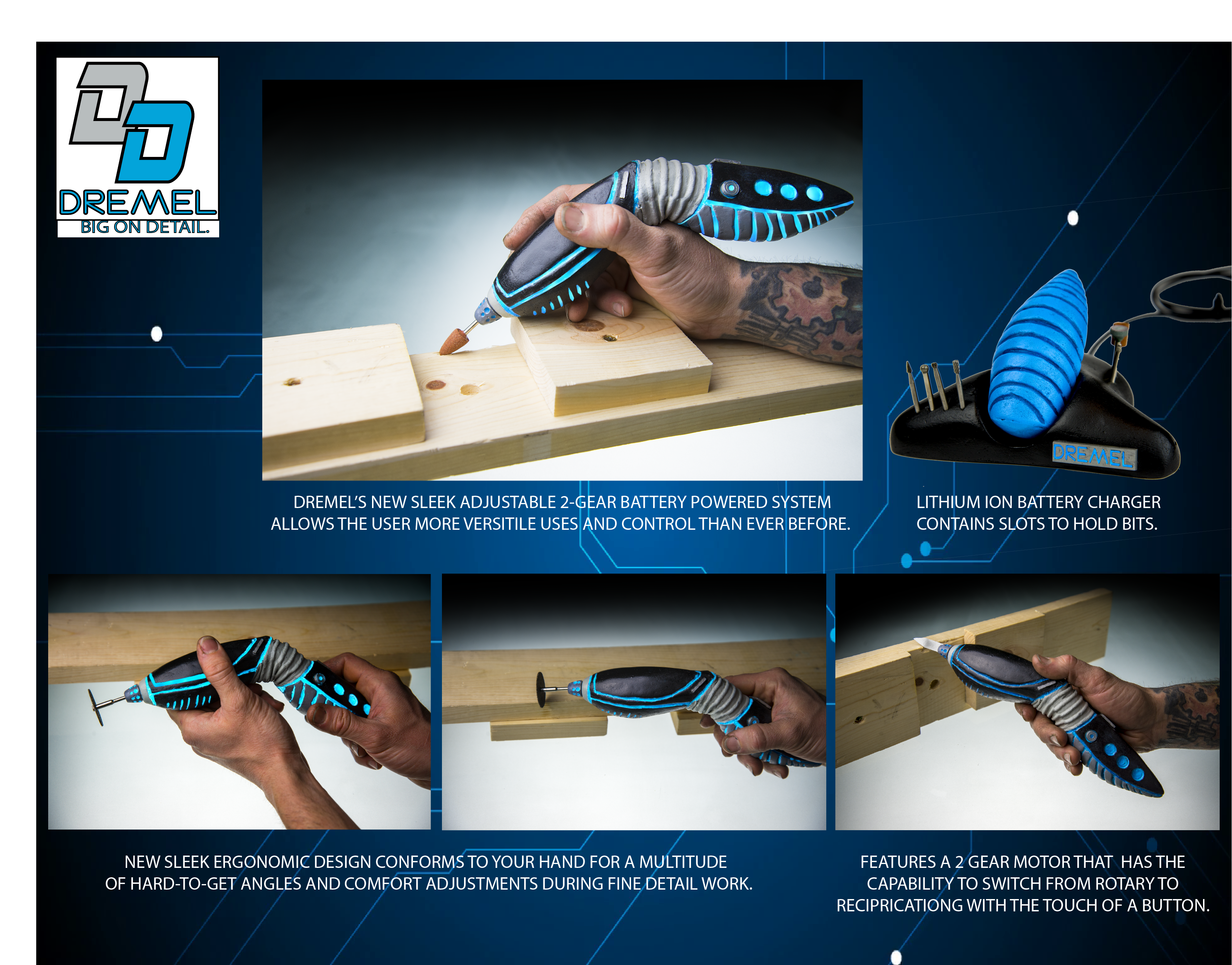 DREMEL BRAND ROTARY TOOL: VERSION 2.0 Idea created during an exercise to improve the design of an existing product line. Share this: Click to share on X (Opens in new window) X Click to share on Facebook (Opens in new window) Facebook Like Loading...