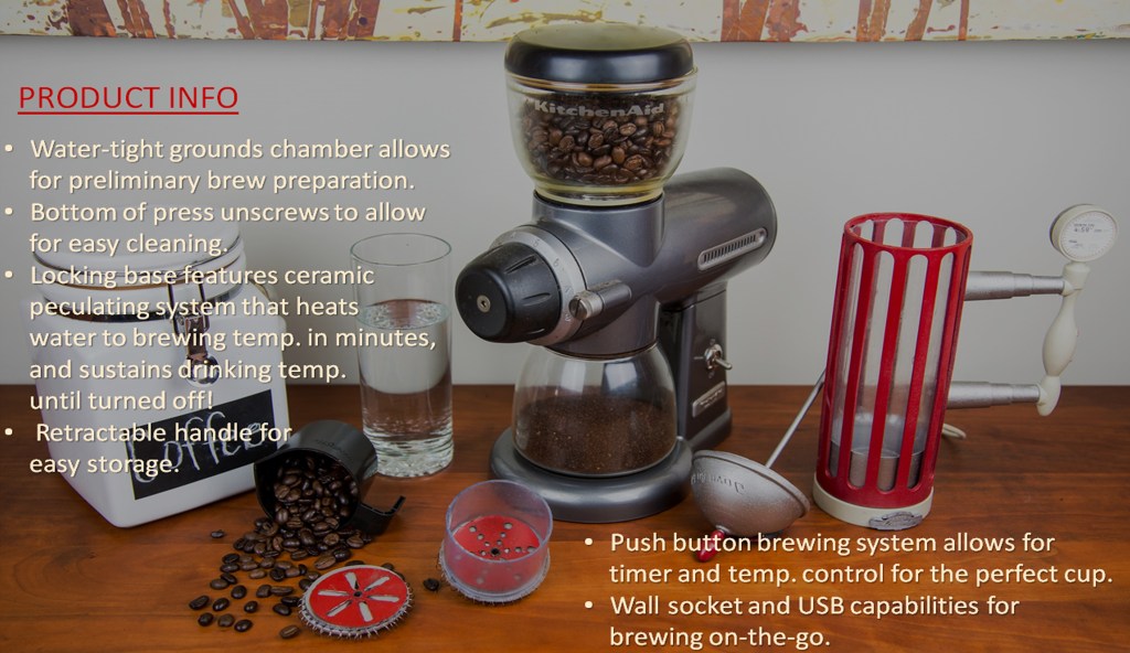 JAVA-AU-GO-GO TRAVEL FRENCH PRESS THERMOS 3D printed prototype for a portable on-the-go French press coffee system that allows you to pre-load the components, brew and enjoy all on the way to your destination. Share this: Click to share on X (Opens in new window) X Click to share on Facebook (Opens in new window) Facebook Like Loading...