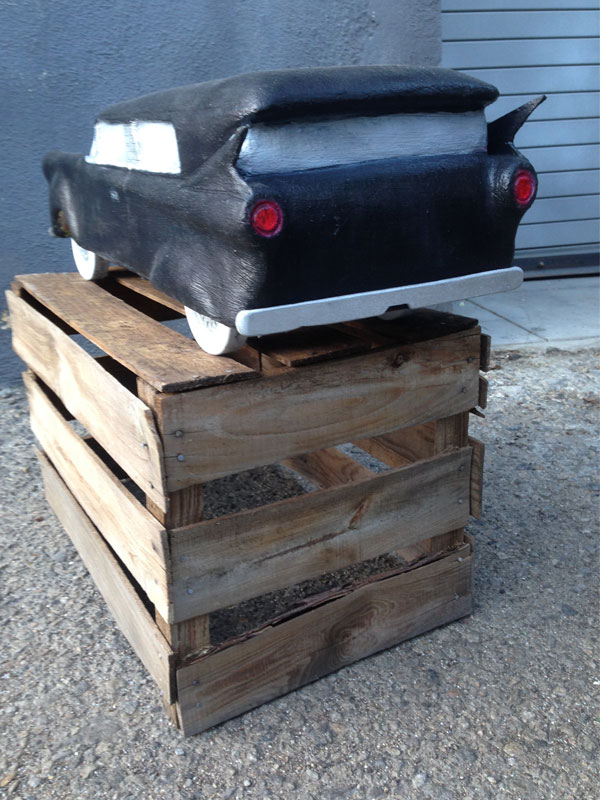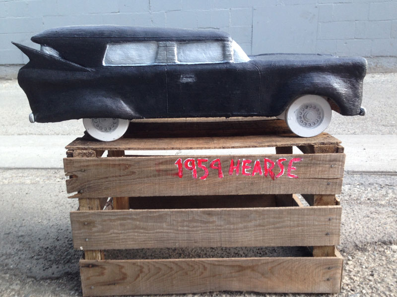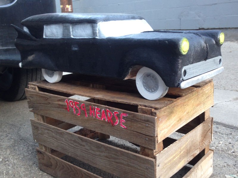 Sculpted and painted 16th scale model of a Cadillac Hearse w/ lasercut grill and accents. CNC wheels.