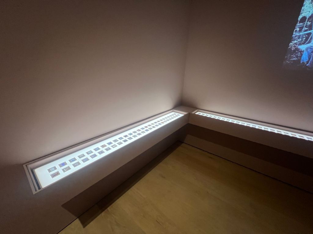Stained and fitted wood paneling for the stage at the Alice Coltrane exhibit, plus floating displays and lightboxes created for an exhibit at The Hammer Museum. Every aspect was hand fabricated, and include a removable magnetic ends for inserting the art.